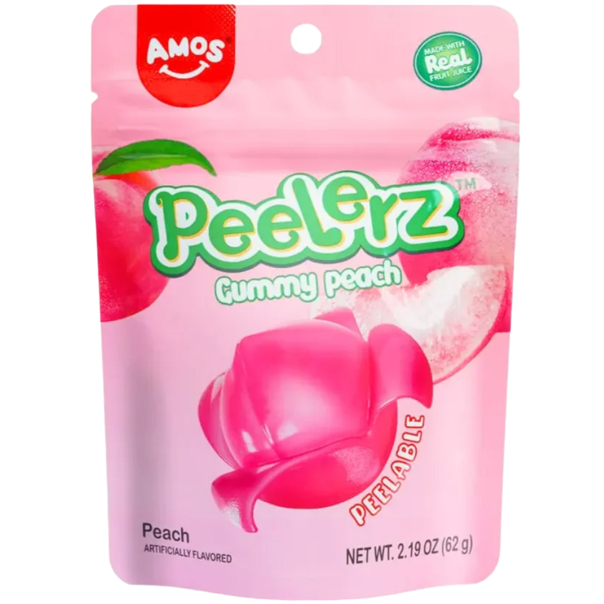Amos Peelerz Peach peelable gummy candy. One of Tik Tok's viral trends!