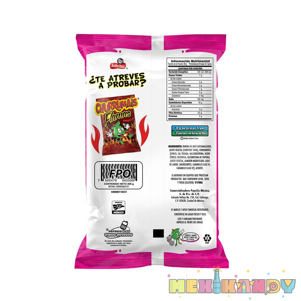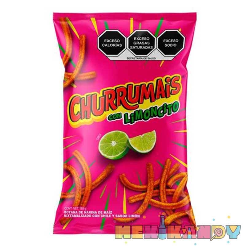 Crunch corn chip with lime and chile seasoning. Churrumais con Limoncito